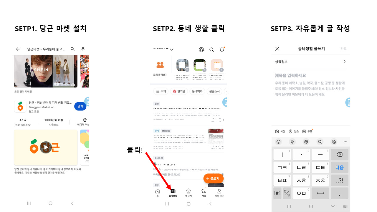 2. 당근마켓 동네생활에 사진과 함께 사용 후기를 작성해주세요.