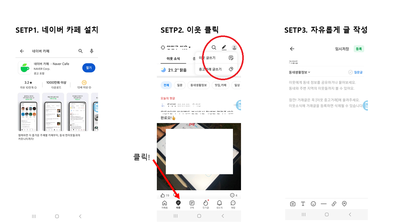 혹은 네이버 카페 이웃에 글을 작성해주세요!