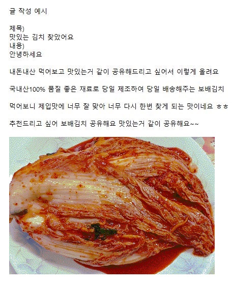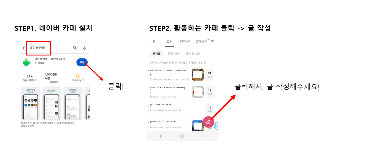 1. 활동하고 계신 네이버 카페에 사진과 함께 사용 후기를 올려주세요.